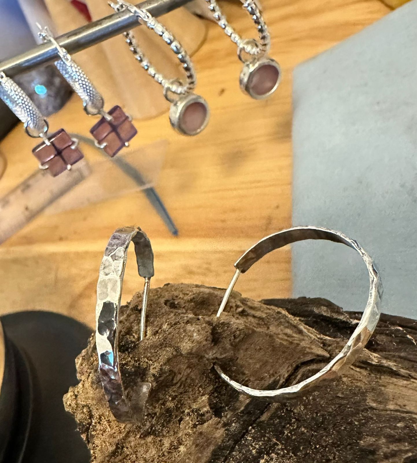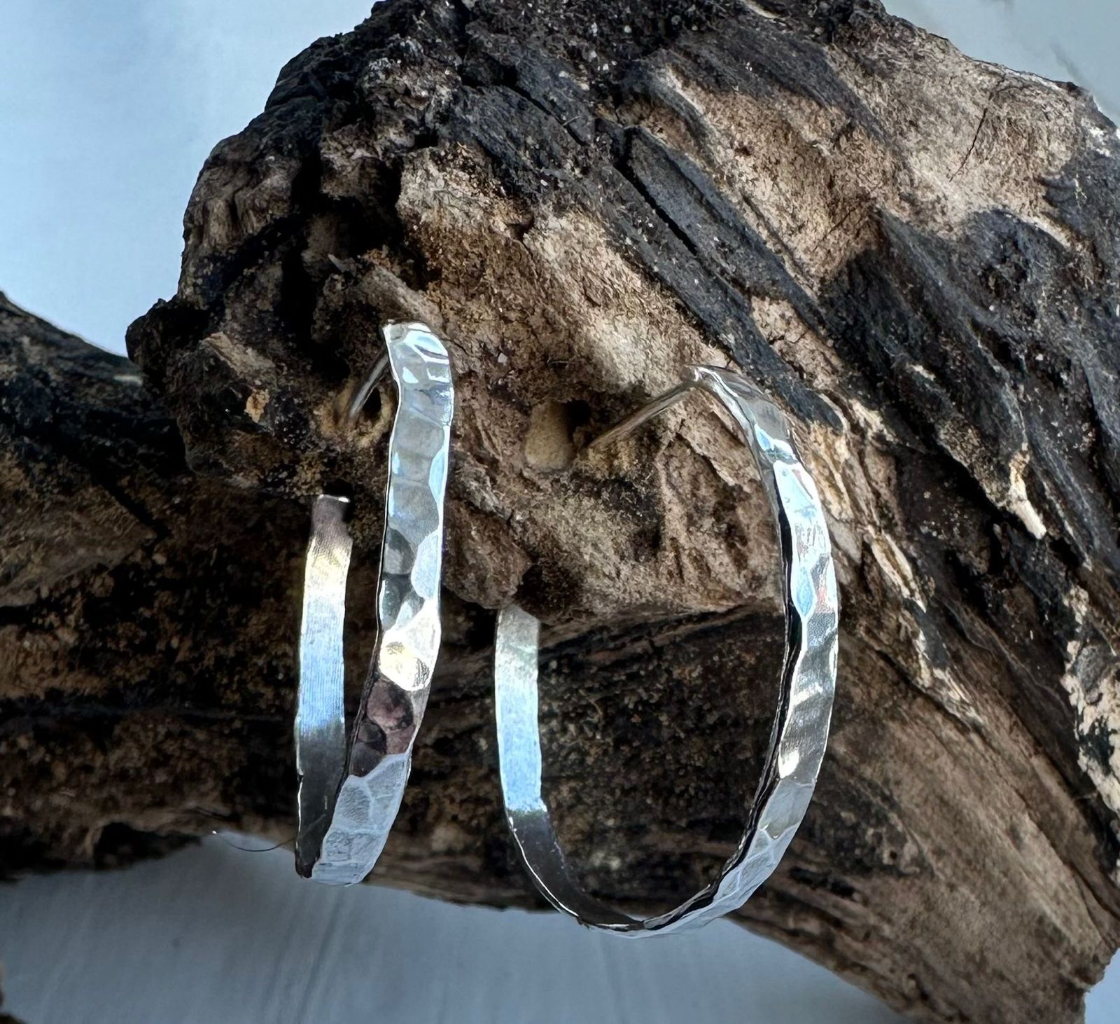 Textured for a subtle fun sparkle these classic sterling silver hoops are unmistakably modern. Handmade in sterling silver these hammered hoops bring a sleek everyday style. Their textured but refined profile offers a classy contemporary alternative to classic round hoops, making them an effortless choicea