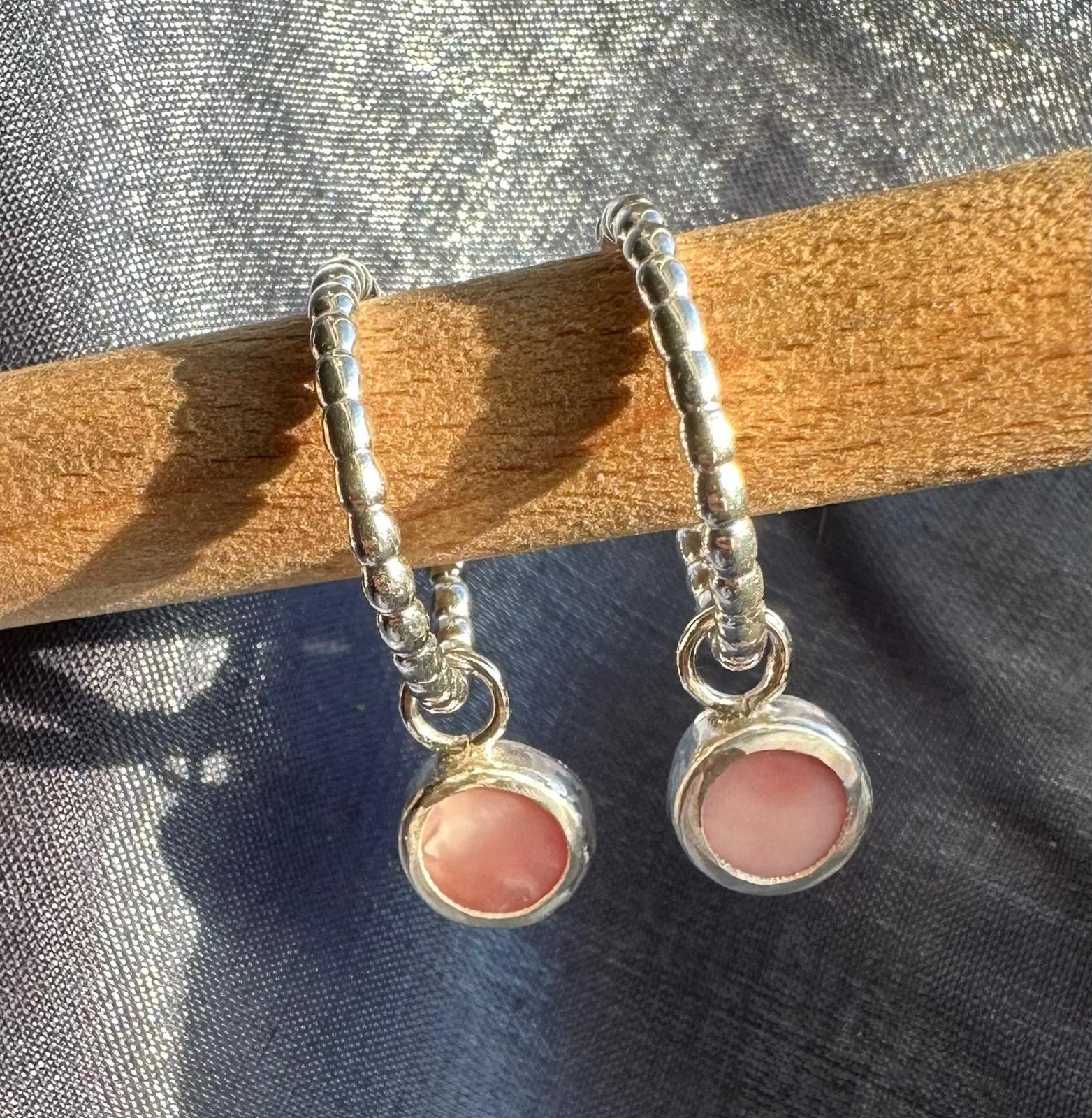 Natural vivid pink Peruvian opals are held in a textured silver and hang elegantly from Stirling silver hoops • Metals: Sterling silver • Size: 2 cm hoop, charm 1.2cm • Stone: Peruvian Pink Opal There is only one pair of these gorgeous earrings available and as such will be dispatched two days after you place your order. You will be emailed the dispatch date for you order and consequently, you will be emailed delivery details. If your item is in stock, we will wend send it out by the second business day from receipt of your order. If your item is not in stock or you want to make changes to the metal or stone used, we will be hand making it from scratch, which can take from 11 to 27 working days. Some rare products can take up to 6 weeks. Bespoke jewellery orders, where we are custom making you, a one-off piece can take longer to make, depending upon what you have requested, We say to allow 3-6 weeks and you will be provided with a production timescale when you receive your quote. To find out if an item is in stock or for urgent orders, please use the contact us page to get in touch.
